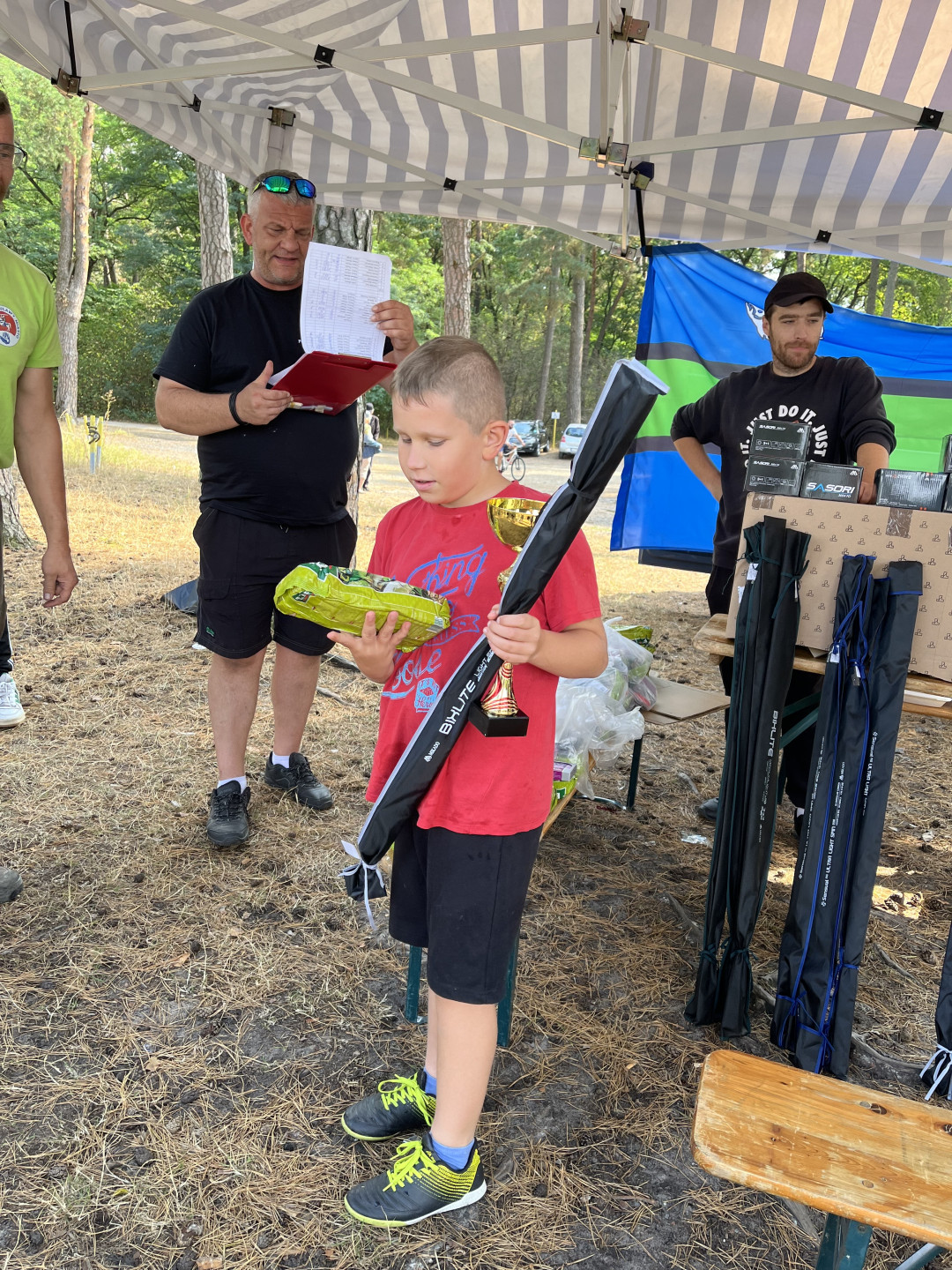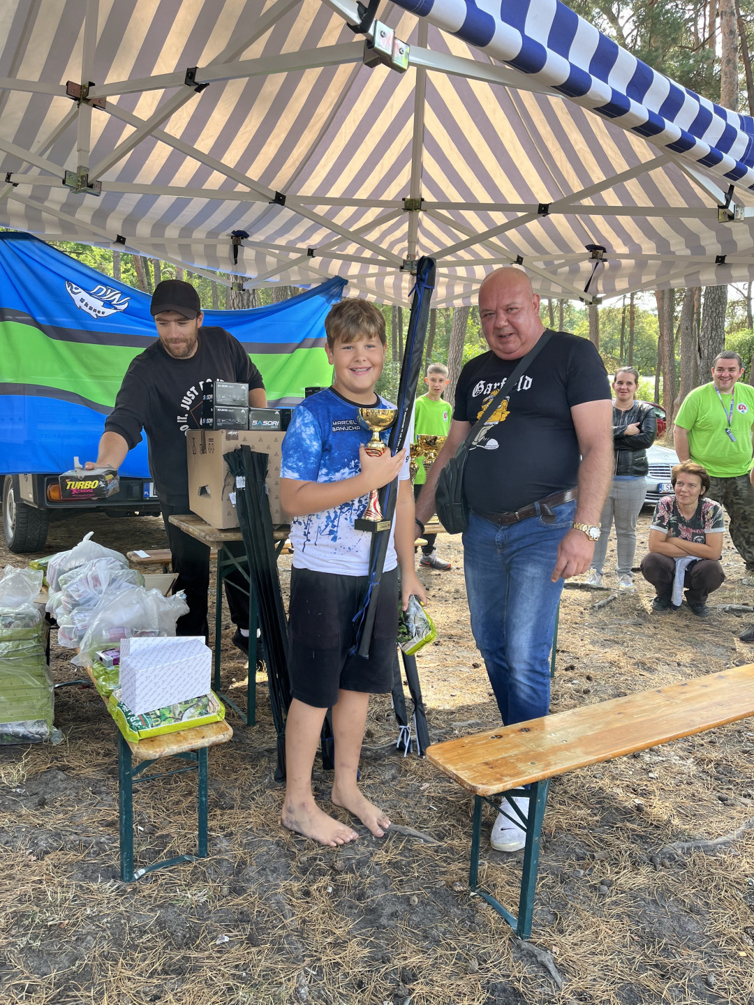 Po posiłku zwycięzcy zostali nagrodzeni pucharami oraz nagrodami przygotowanymi przez Wiceprezesa ds. Młodzieży Dariusza Ciechańskiego. Wszyscy otrzymali też upominki wędkarskie oraz słodycze i napoje przygotowane przez pracowników Okręgu.